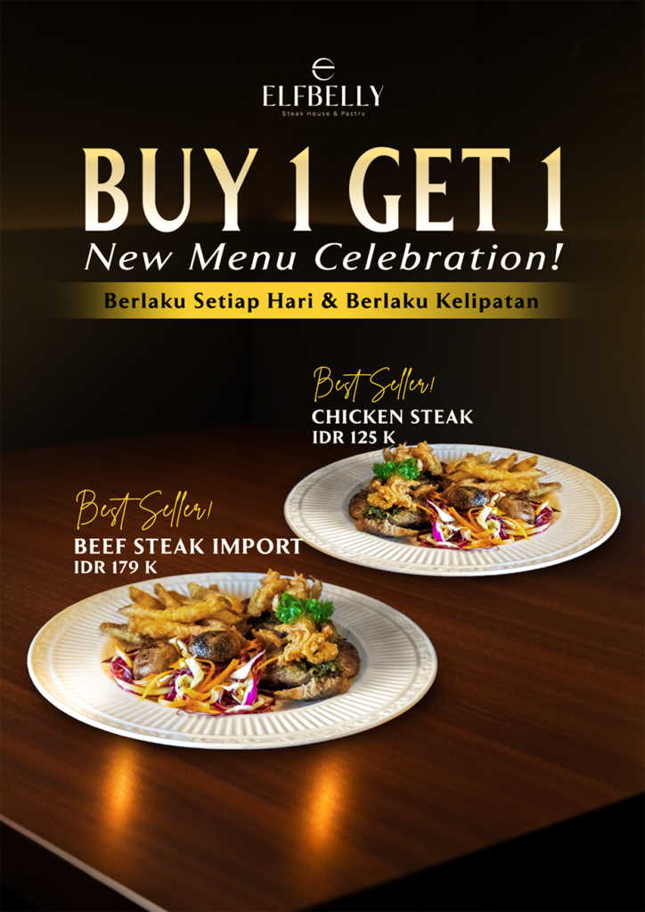 Elfbelly Steakhouse Lombok menghadirkan promo spesial untuk para pecinta steak. Kami menyajikan steak berkualitas premium dengan teknik pemanggangan terbaik, cita rasa autentik, dan bahan pilihan. Kini, Anda bisa menikmati menu favorit Elfbelly dengan harga lebih hemat.